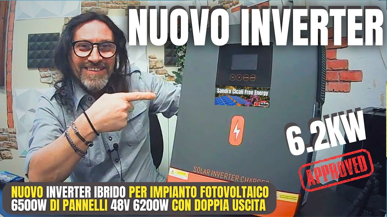 Sandro reviews a 6.2 kW hybrid inverter, unboxing it and explaining its key features, such as solar panel compatibility, battery charging, and voltage range. He demonstrates the installation process, testing its performance with solar panels, the grid, and a 51.2V battery, highlighting its efficiency and versatility.