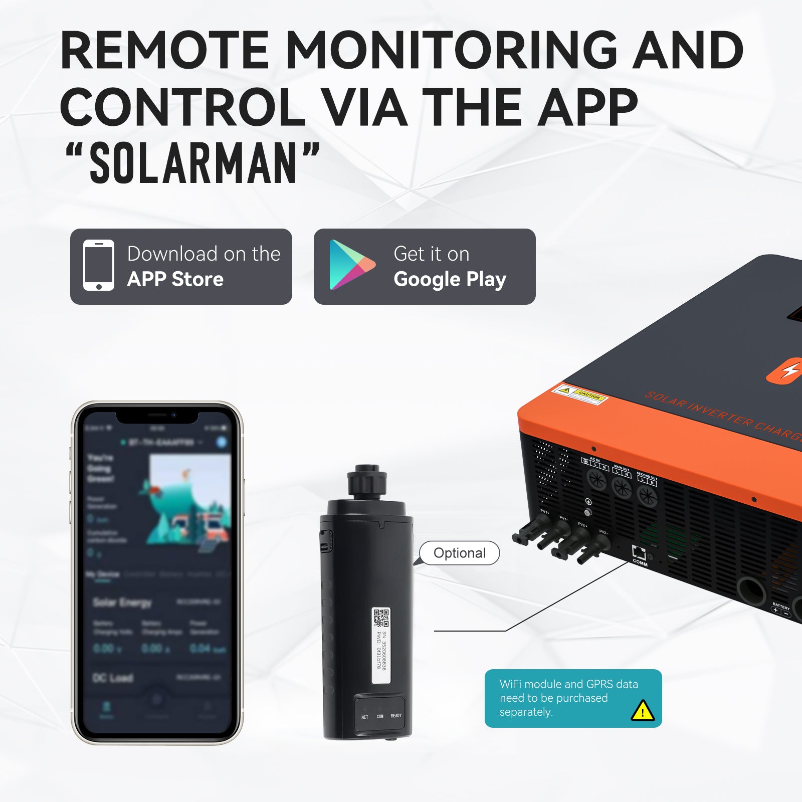 This WiFi module is very easy to setup, just hook up the RJ45 cable to the inverter, open the app, introduce the WiFi credentials and BAN! Power consumption, Generation, Bought is in your phone.